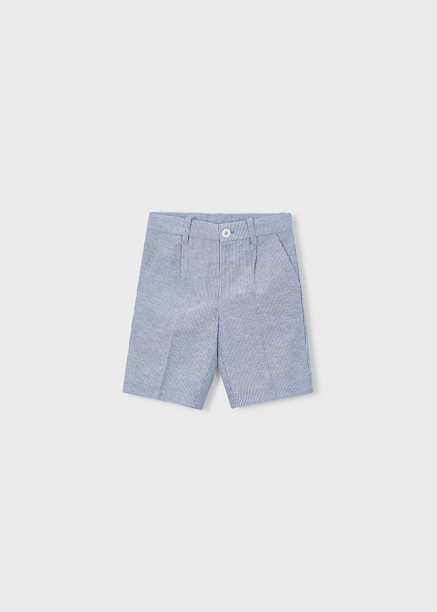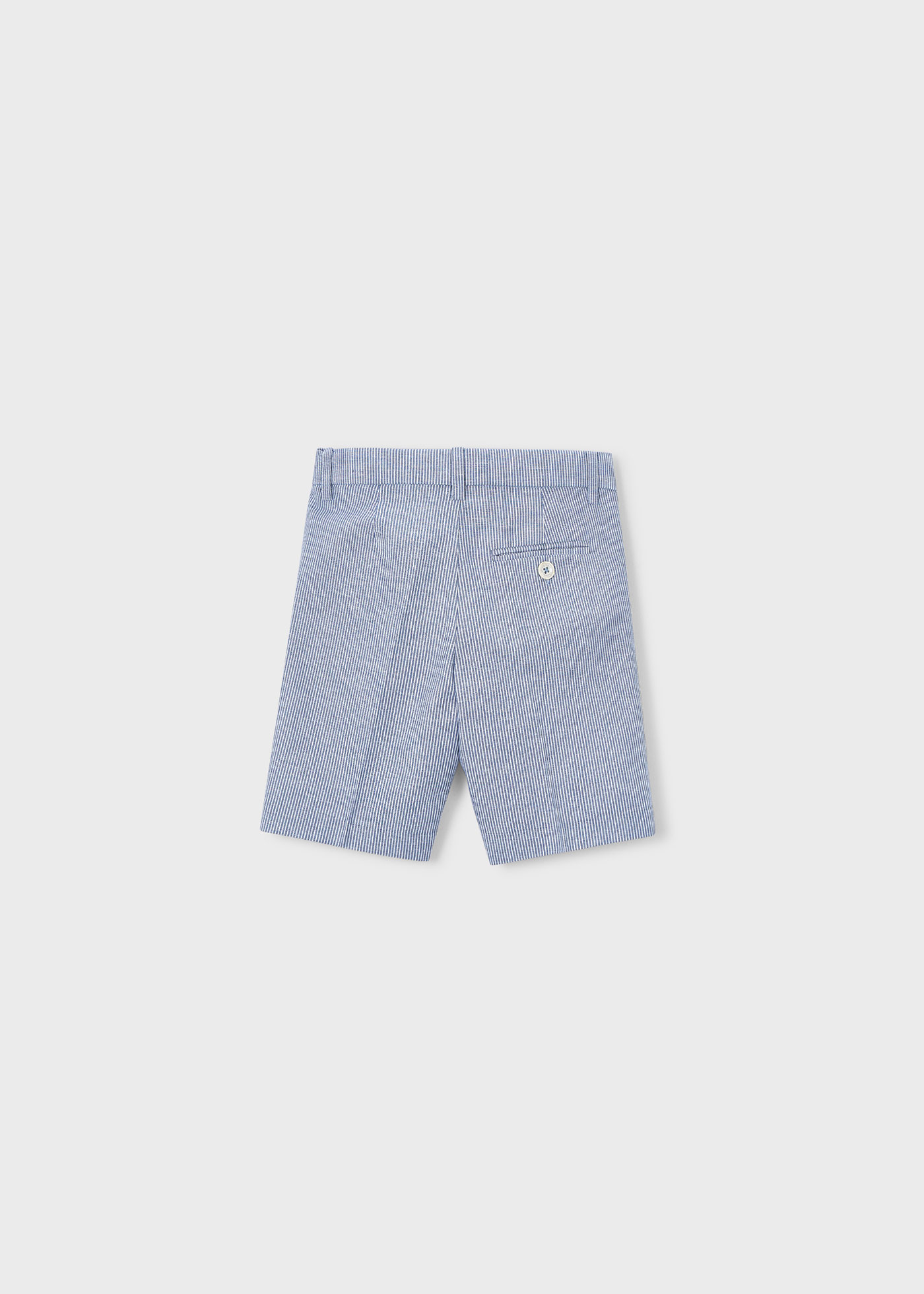 Eleganckie bermudy dla chłopca od Mayoral to idealny wybór na letnie uroczystości oraz stylowe codzienne zestawy. Ten model łączy klasyczny wygląd z wygodą, dzięki czemu dziecko może czuć się swobodnie, a jednocześnie wyglądać schludnie i elegancko. Spodenki zapinane są na guzik i posiadają elastyczną gumkę w pasie z dodatkową regulacją, co ułatwia dopasowanie do sylwetki. Szlówki w pasie pozwalają na noszenie paska, a delikatna kantka nadaje całości bardziej eleganckiego charakteru. Z przodu znajdują się praktyczne kieszenie, które podkreślają klasyczny fason bermudów. Model wykonany jest z naturalnych materiałów – 90% bawełny i 10% lnu – co zapewnia przewiewność, lekkość i komfort noszenia nawet w ciepłe dni. Bermudy Mayoral to doskonała propozycja dla rodziców, którzy szukają połączenia elegancji, naturalnych tkanin i wygody w letniej garderobie chłopca.