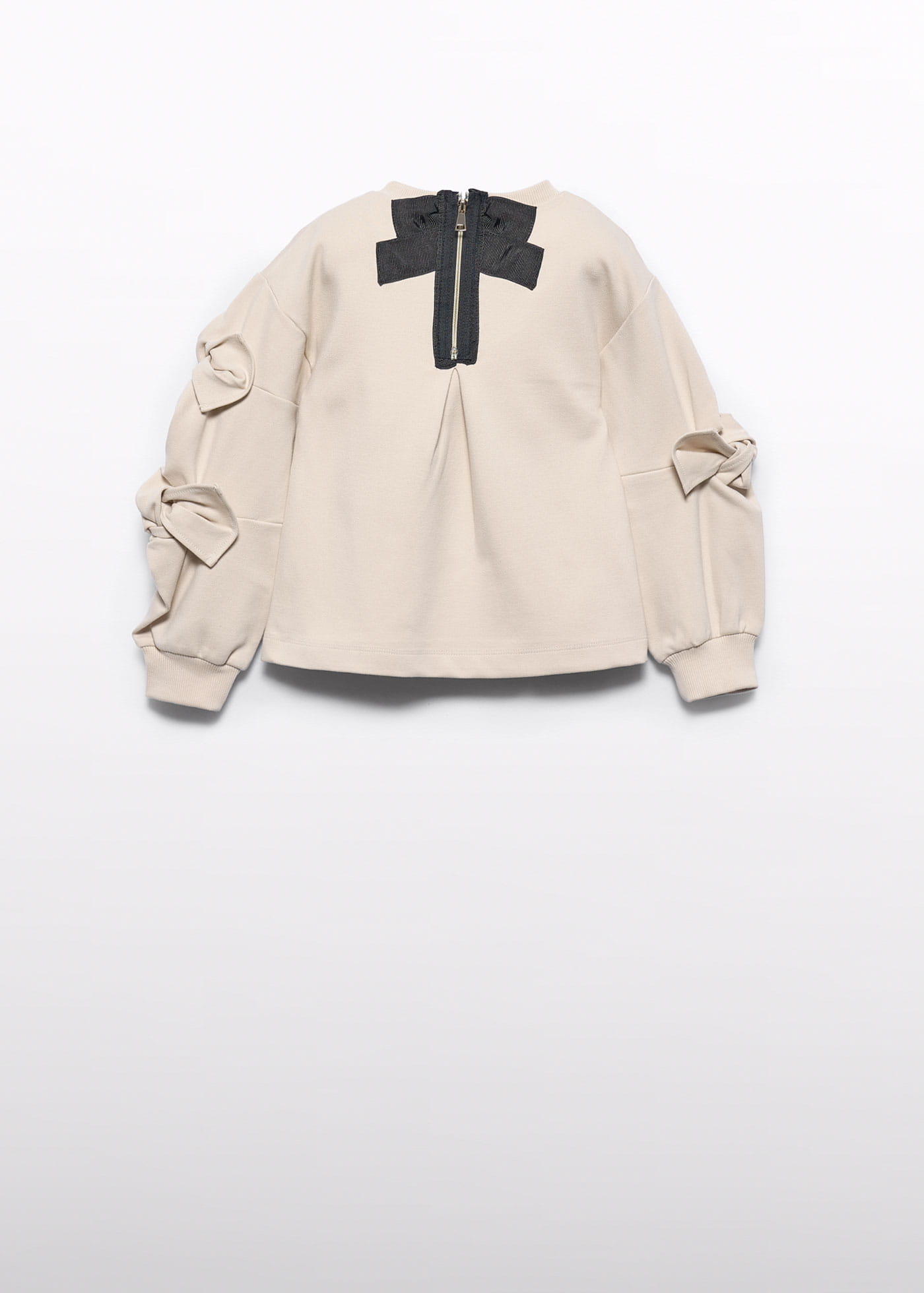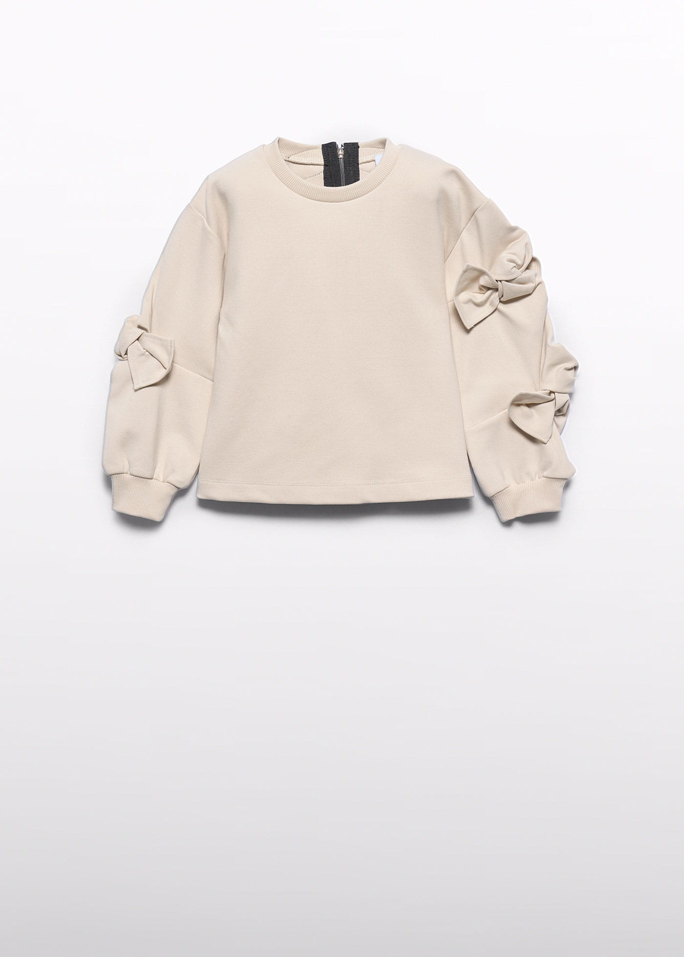 Bluza dresowa dla dziewczynki od Abel&Lula to połączenie szyku, komfortu i elegancji. Wykonana z mieszanki bawełny i wiskozy, zapewnia przyjemność noszenia przez cały dzień. Bluza ma długi rękaw oraz okrągły dekolt, a na rękawach znajdują się piękne ozdobne kokardy, które nadają całości wyjątkowego charakteru. Lekko w kształcie litery A, idealnie układa się na sylwetce, podkreślając jej elegancki wygląd. Z tyłu bluza ozdobiona jest subtelnym zamkiem, wykończonym czarną ozdobną taśmą, co dodaje jej niepowtarzalnego uroku. To niezwykły element garderoby, który łączy styl z komfortem, doskonały zarówno na co dzień, jak i na specjalne okazje.