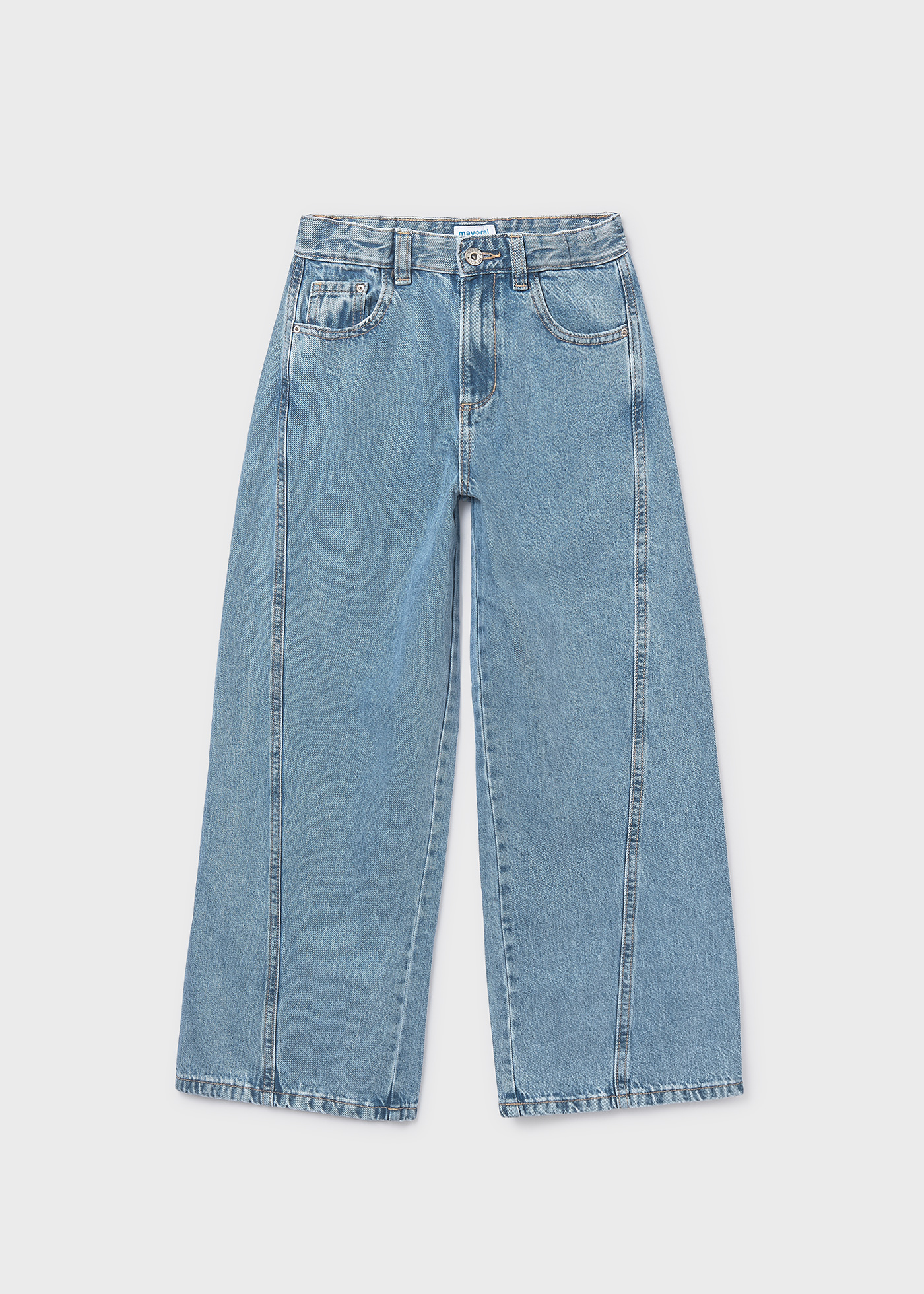Długie, szerokie jeansowe spodnie typu wide leg dla dziewczynki Mayoral