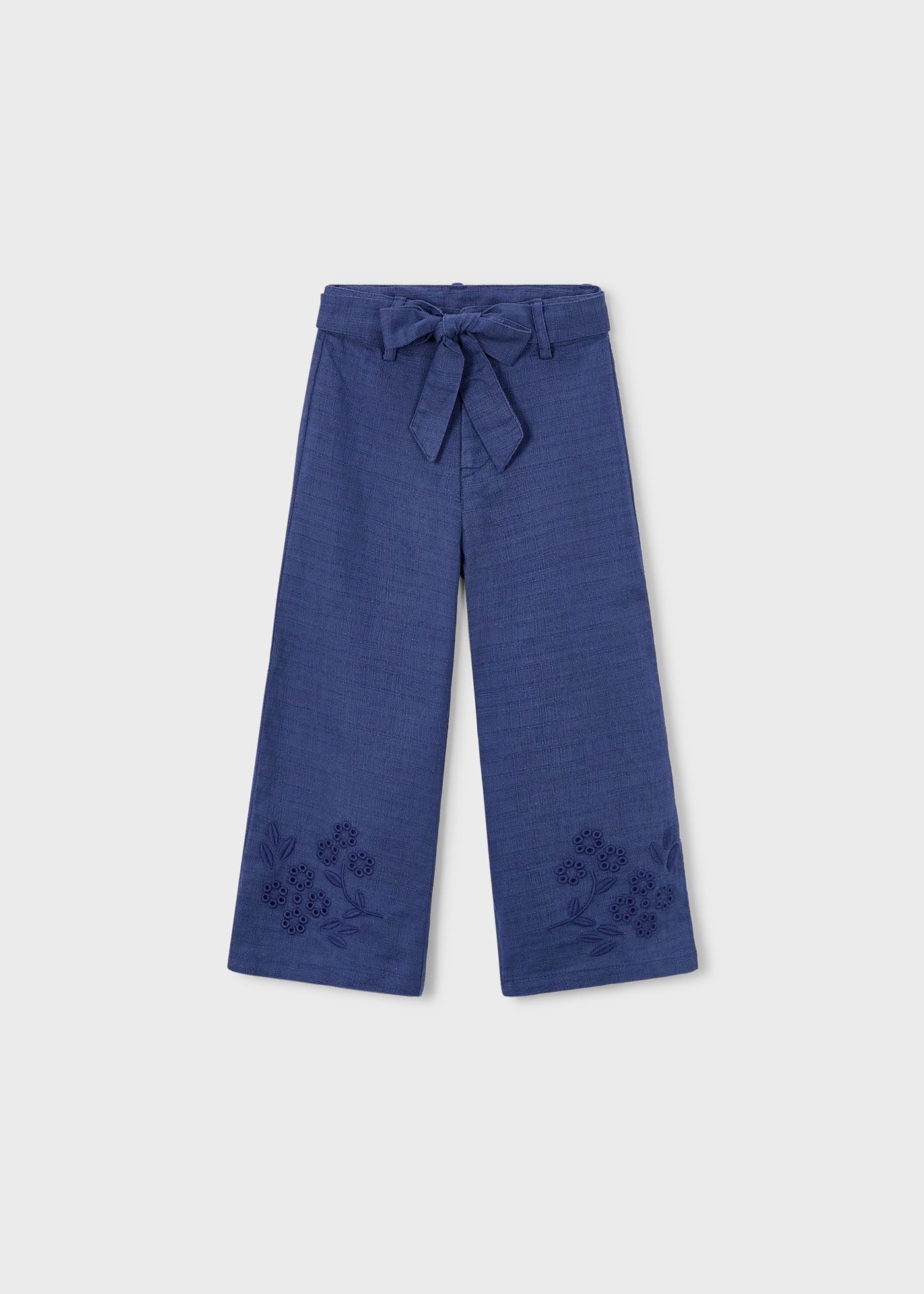 Długie szerokie spodnie z haftem dla dziewczynki Mayoral