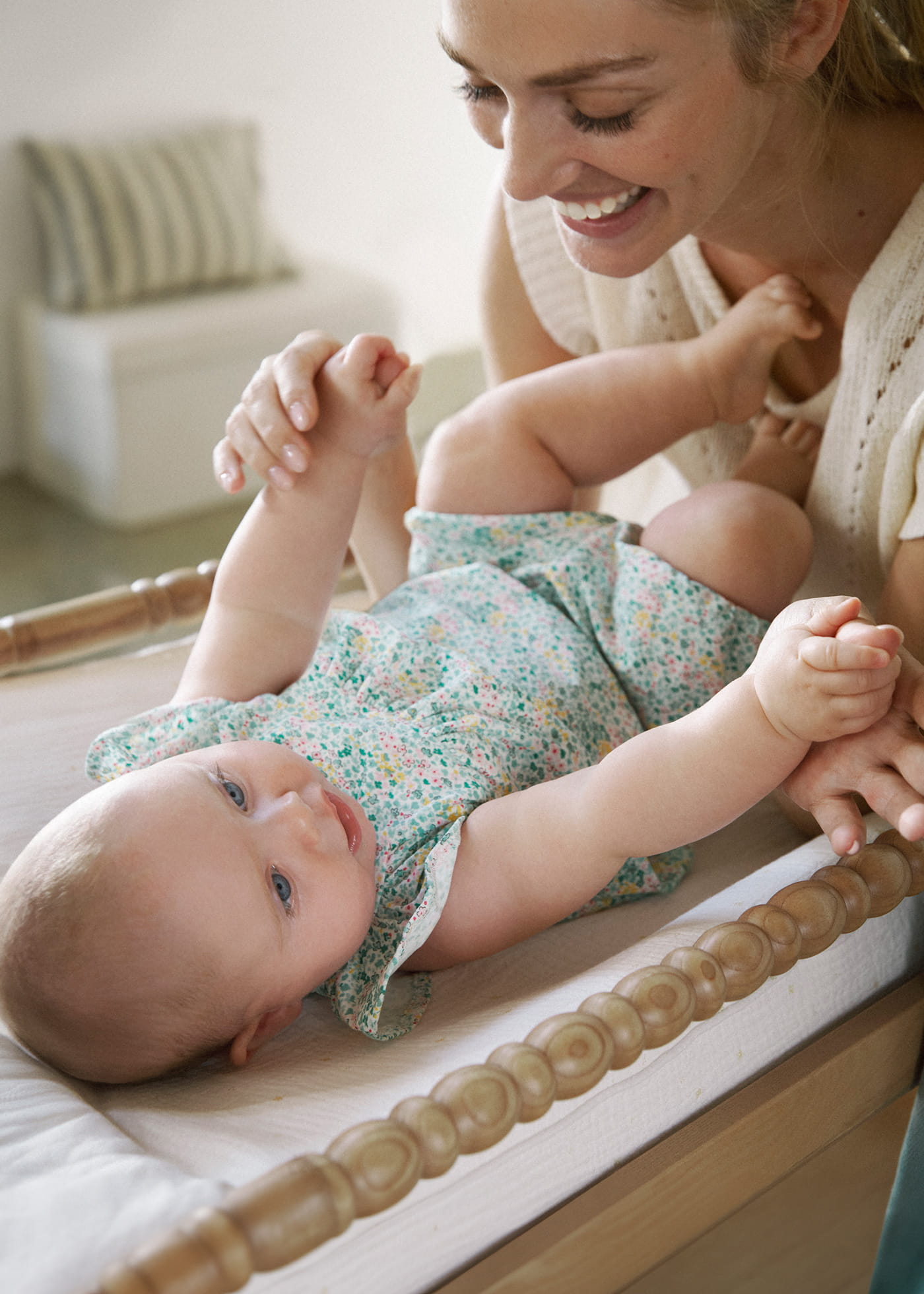 Komplet dla małej dziewczynki od Mayoral to uroczy, czteroczęściowy zestaw, który idealnie sprawdzi się na letnie dni. Zestaw składa się z dwóch koszulek z krótkim rękawem oraz dwóch par krótkich spodenek. Pierwsza koszulka w kolorze miętowym ma subtelny nadruk kwiatka, natomiast druga to wesoła koszulka w kolorową łączkę kwiatów, która wprowadza radosny letni akcent. Obie koszulki mają zapięcie na jeden guziczek z tyłu, co ułatwia zakładanie. Do zestawu dołączone są dwie pary krótkich spodenek na gumce: jedna gładka, miętowa, a druga w drobne, kolorowe kwiatuszki, pasujące do nadruku na koszulce. Nogawki spodenek są zakończone delikatną gumeczką, zapewniając wygodę i komfort. Komplet jest w pełni bawełniany, co zapewnia maluszkowi przewiewność i swobodę ruchów. Idealny na letnie wyjścia, zestaw można dowolnie łączyć, tworząc wygodne i stylowe stylizacje na ciepłe dni.