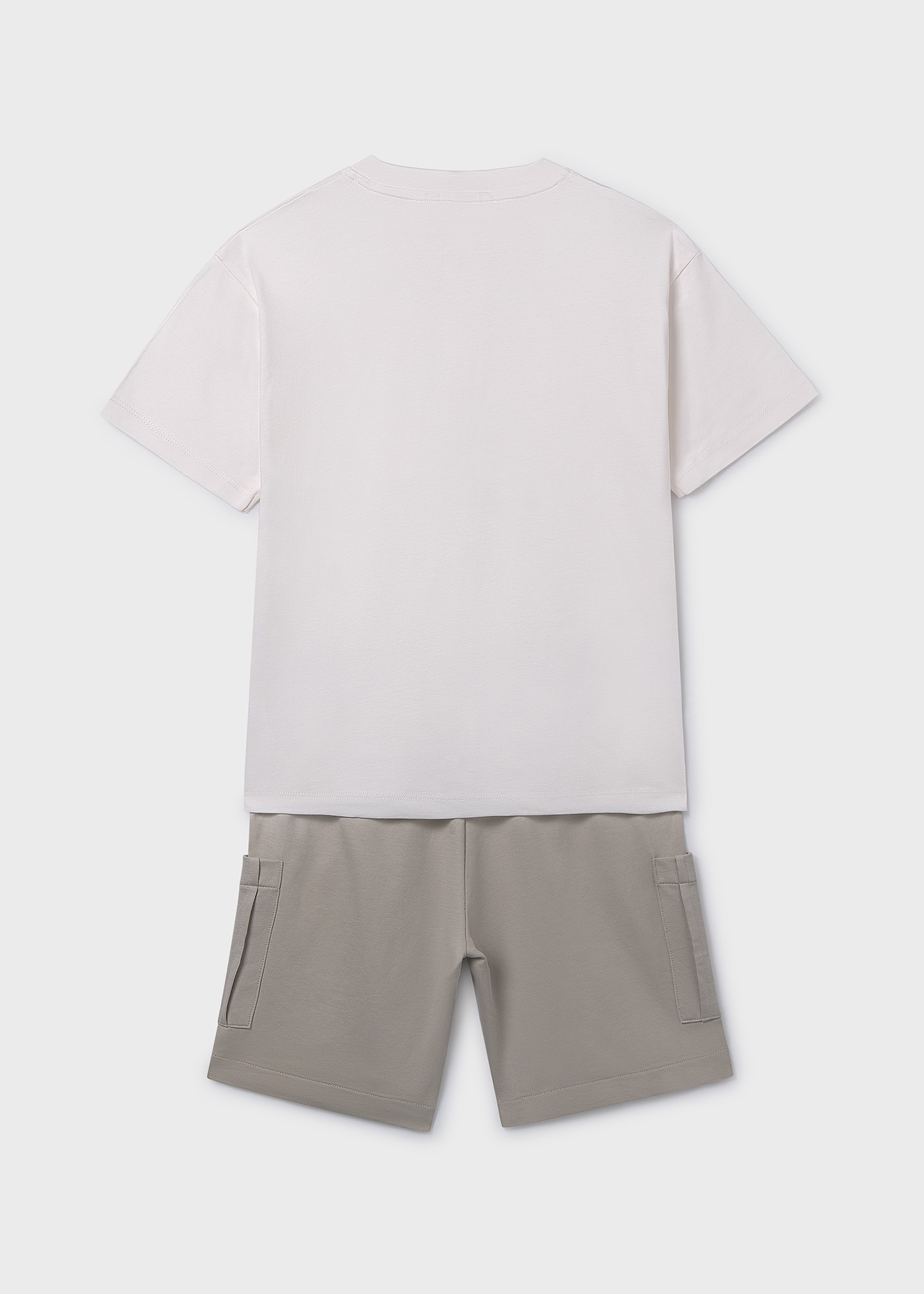 Komplet dwuczęściowy dzianinowy, koszulka z krótkim rękawem oraz szorty z kieszeniami dla chłopca Mayoral ostatni rozmiar 140