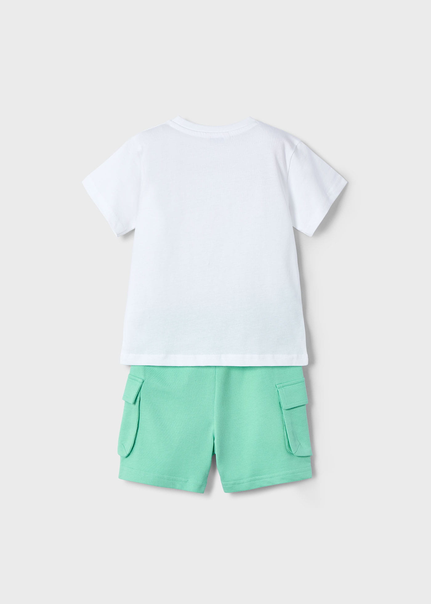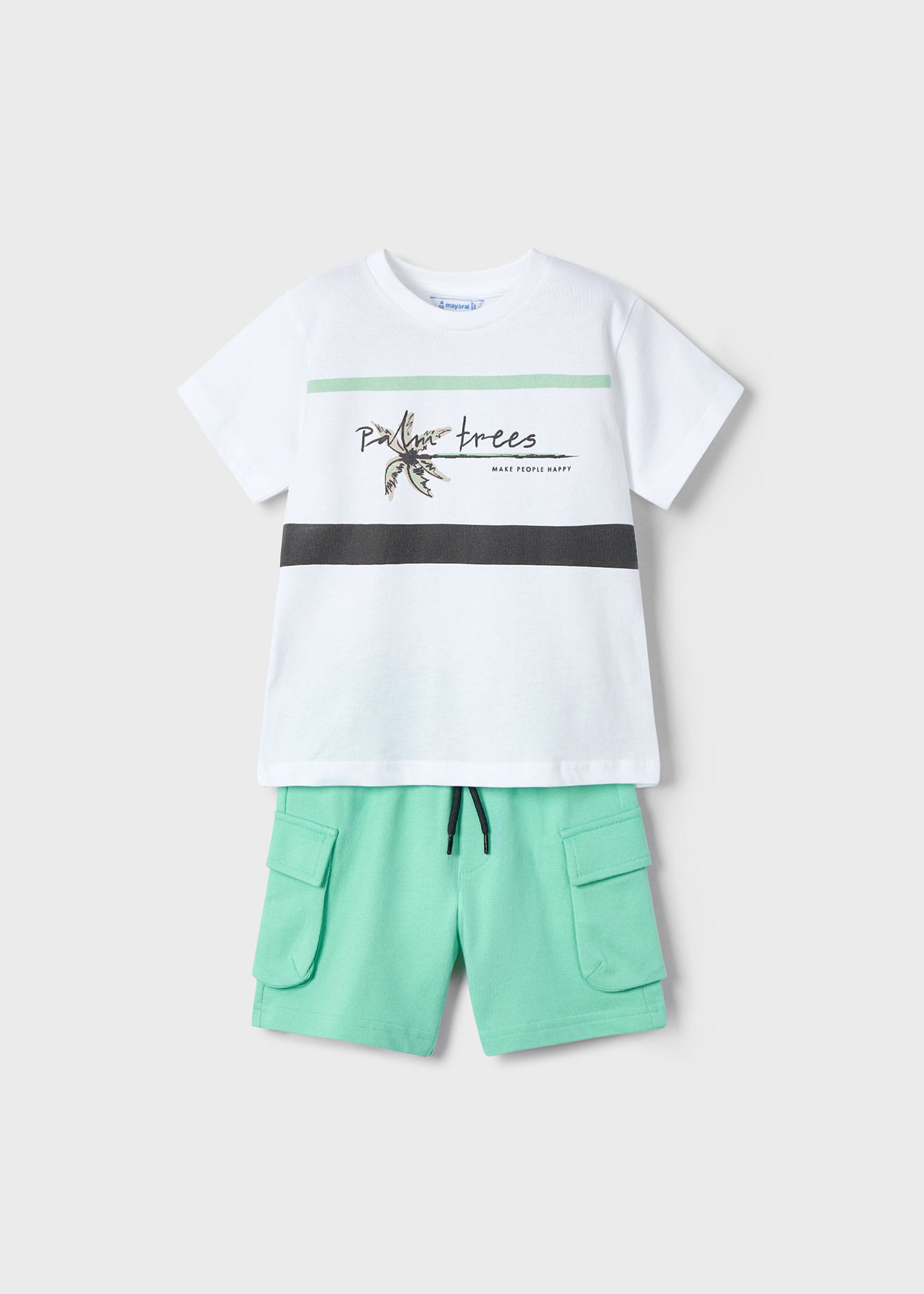 Komplet dzianinowy, koszulka z krótkim rękawem z motywem palmy i szorty na gumce dla chłopca Mayoral, ostatni rozmiar 128