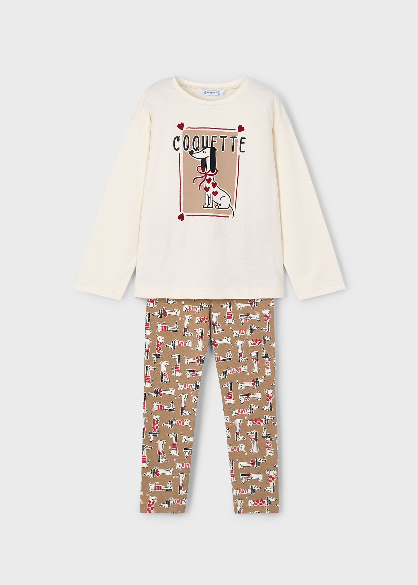 Komplet koszulka z długim rękawem i leginsy z motywem pieska dla dziewczynki Mayoral, ostatni rozmiar 122
