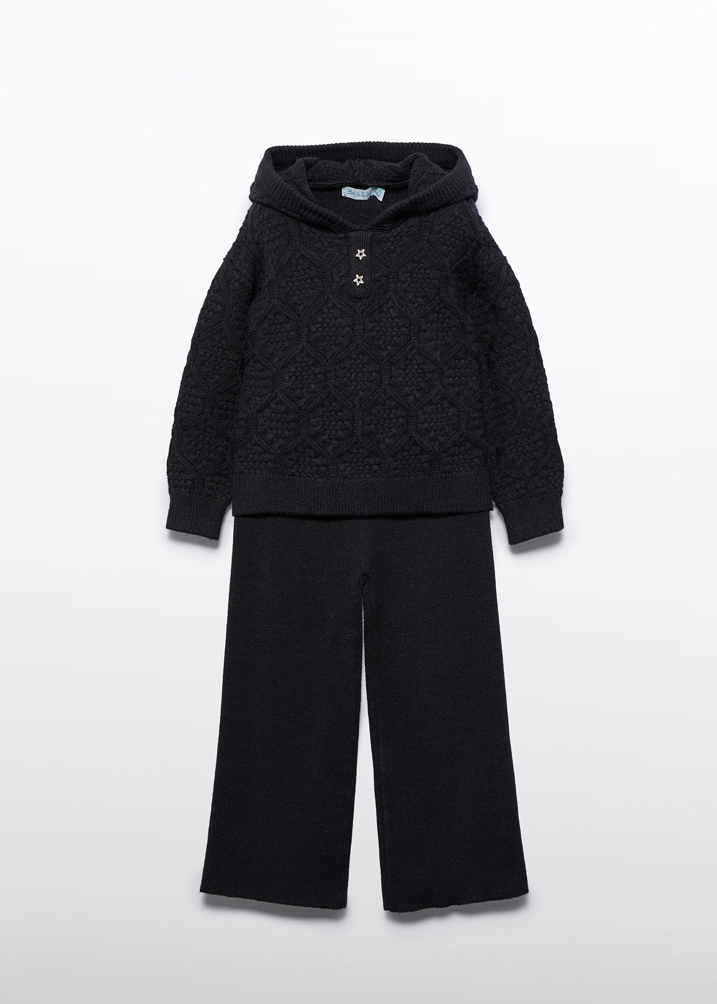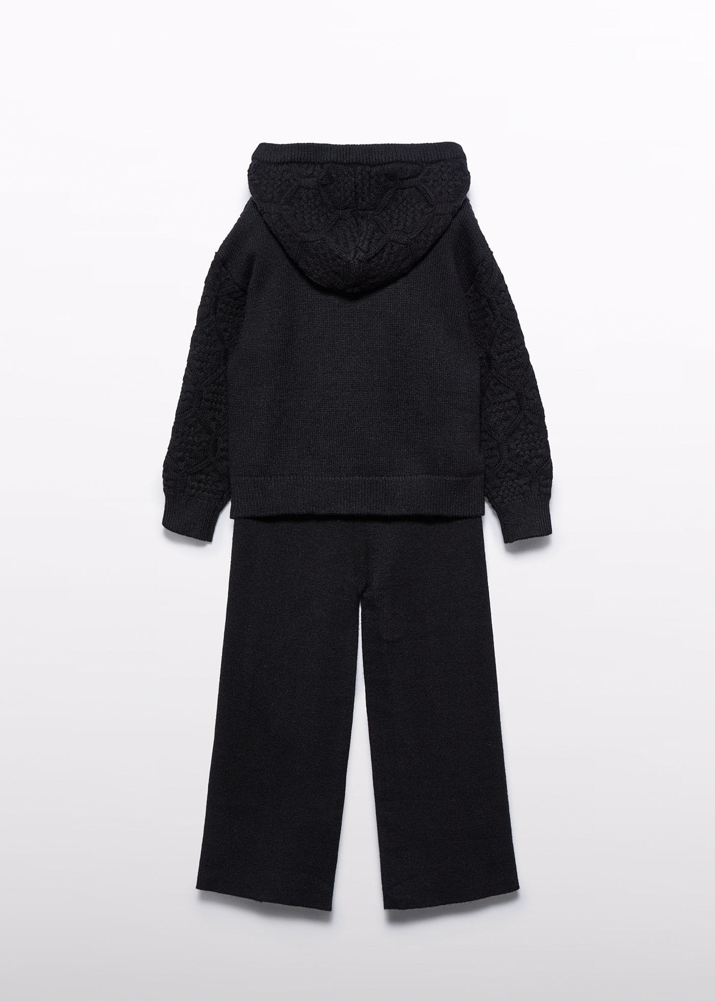 Komplet trykotowy, bluza z kapturem i szerokie spodnie dla dziewczynki
