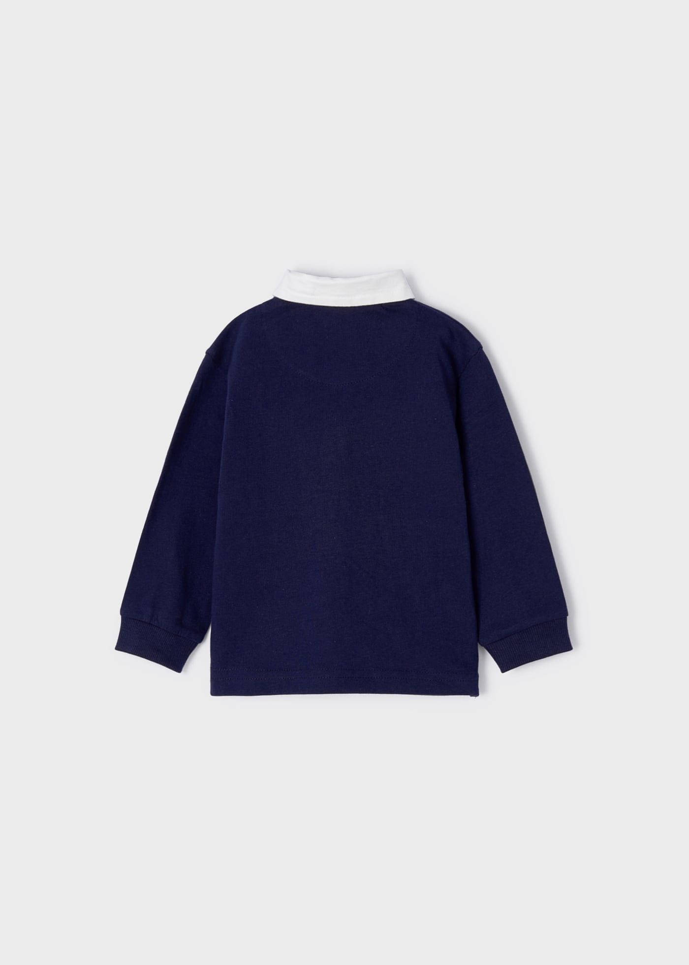 Polo z długim rękawem dla niemowlęcia. Klasyczny kołnierzyk polo. Zapięcie z przodu na guziki. Delikatna i elastyczna bawełna.