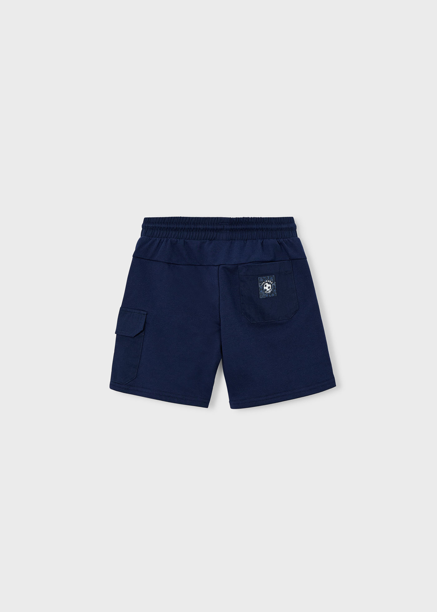 Krótkie spodenki dla chłopca od Mayoral to wygodna i uniwersalna propozycja na ciepłe dni, idealna do codziennych i sportowych stylizacji. Model w klasycznym granatowym kolorze doskonale sprawdzi się jako baza do każdej koszulki lub bluzy, tworząc praktyczny zestaw na lato. Spodenki posiadają pas z szerokiej gumy oraz dodatkowy troczek, co zapewnia dobre dopasowanie i komfort noszenia. Po bokach znajdują się kieszenie, a dodatkowa kieszeń na nogawce zapinana na rzep zwiększa funkcjonalność i dodaje sportowego charakteru. Z tyłu umieszczono jedną kieszonkę, idealną na drobne przedmioty. Model wykonany jest w 63% z bawełny, dzięki czemu spodenki są miękkie, przewiewne i przyjazne dla skóry dziecka. Nie krępują ruchów i świetnie sprawdzą się podczas zabawy, spacerów oraz wakacyjnych aktywności. To praktyczne krótkie spodenki chłopięce Mayoral, łączące wygodę, funkcjonalność i ponadczasowy styl.