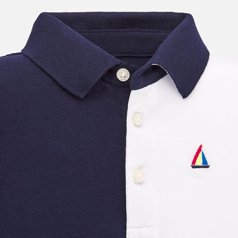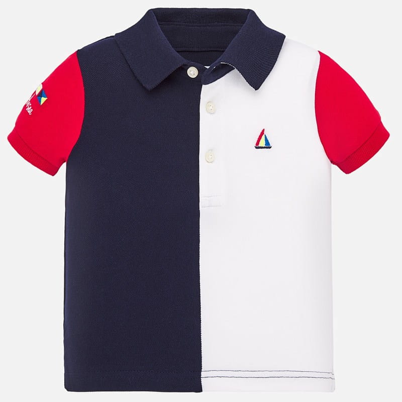 Polo z krótkim rękawem z detalami w kontrastowych kolorach dla chłopca Baby. Okrągły dekolt. Delikatna i elastyczna bawełna. Model z bocznymi rozcięciami na dole, które dają większą swobodę. Ozdoby: ozdobny haft. Model trójkolorowy.