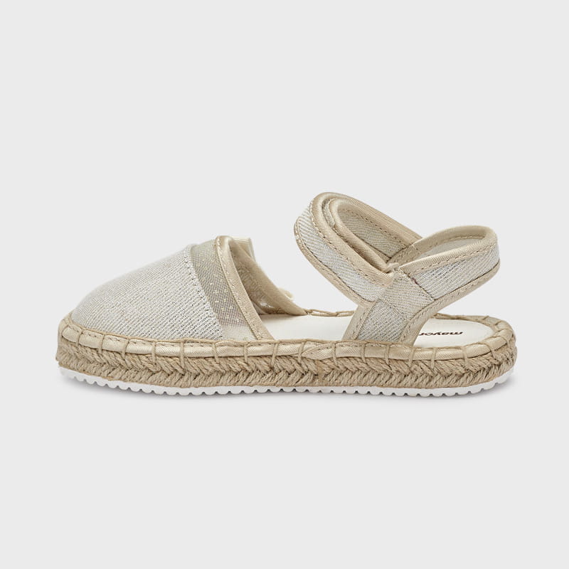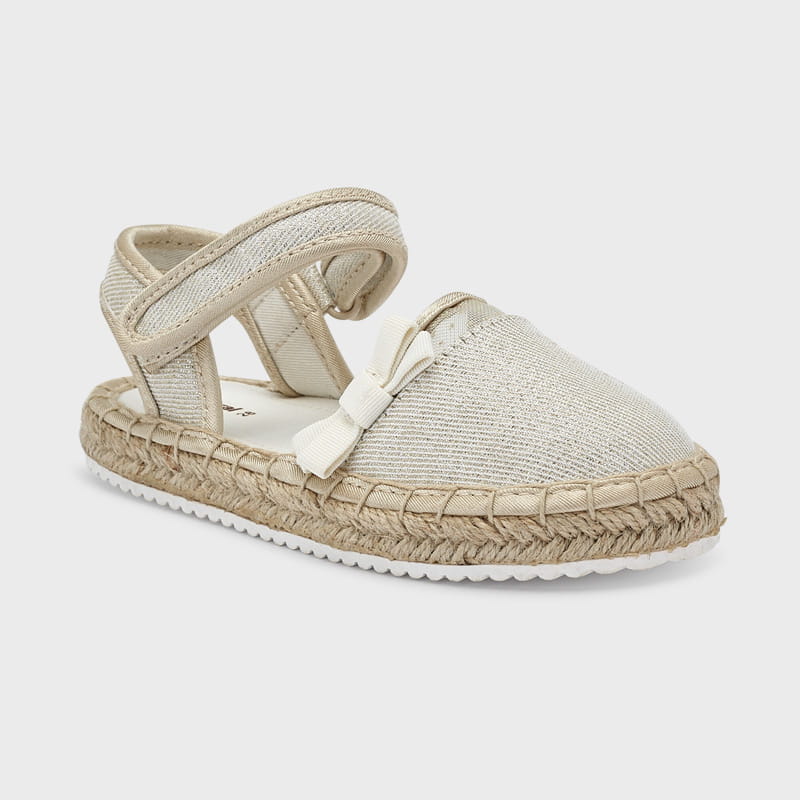 Sandałki w stylu espadryle dla dziewczynki 8 do 16 lat, doskonałe do luźnych i radosnych stylizacji. Buty z wyściółką wewnętrzną i podeszwą wewnętrzną z oddychającej bawełny. Zewnętrzna część wykonana z materiału tekstylnego. Wygodna podeszwa łączona utworzona z plecionki z antypoślizgową gumą. Zapięcie na regulowany rzep, co gwarantuje doskonałe przyleganie do stopy. Ozdoby: aplikacja w postaci kokardki.