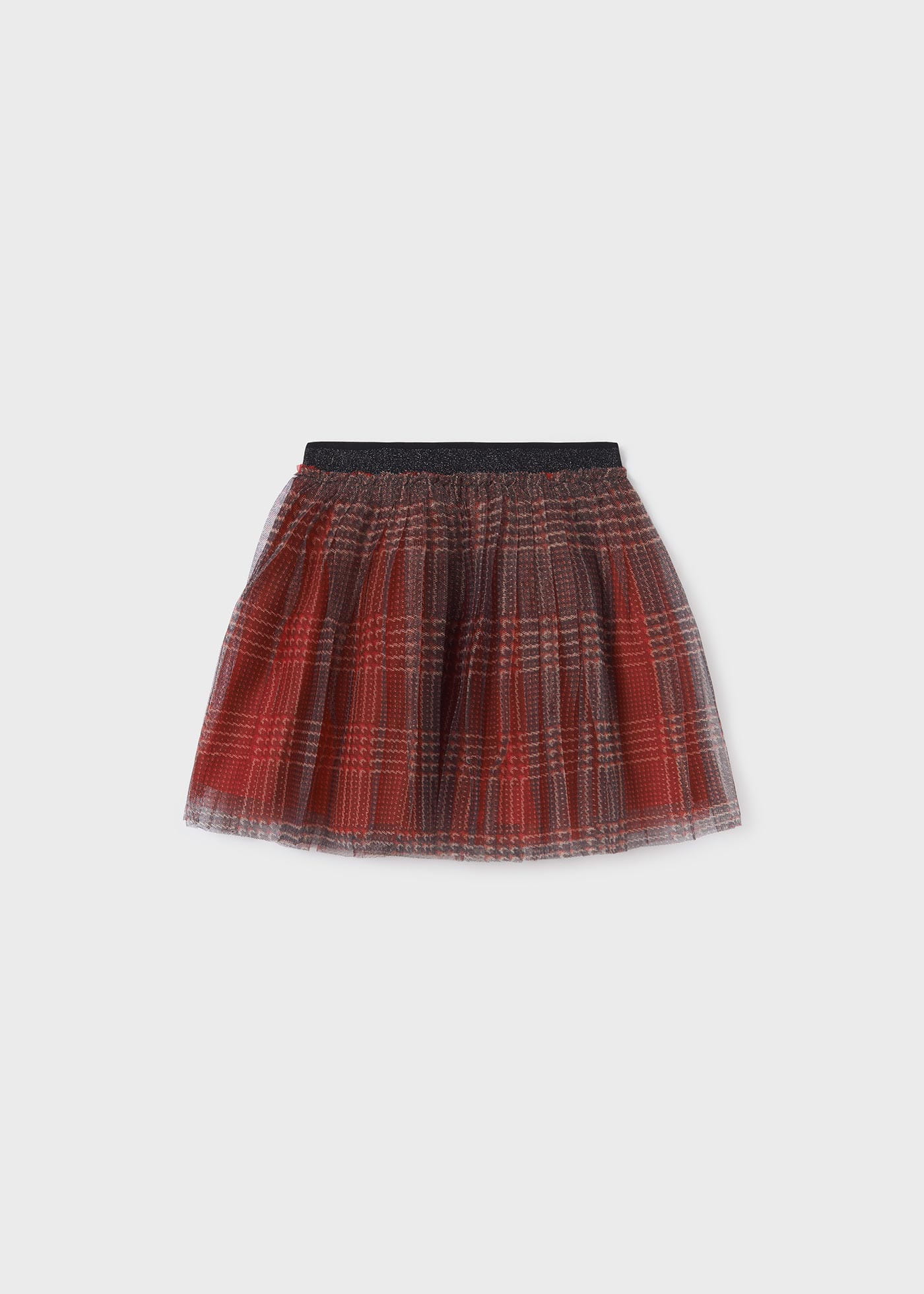 Spódnica dla dziewczynki. Elastyczna gumka w pasie. Artykuł wykonany z lekkiego i zwiewnego tiulu. Motyw w kratę.