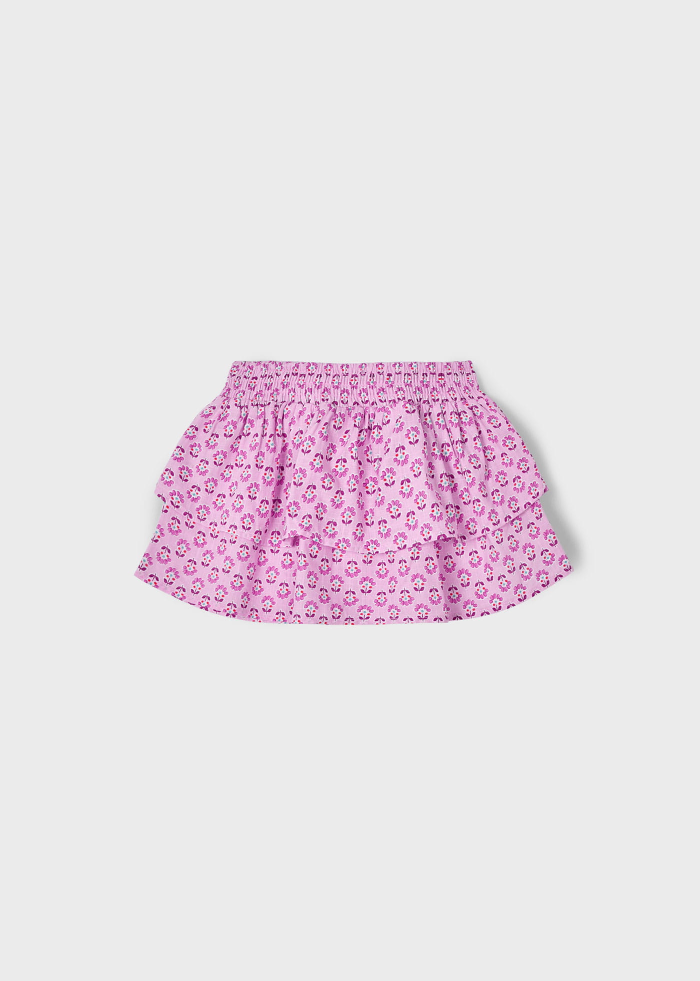 Spódniczka dla dziewczynki Mayoral to urocza i wygodna propozycja na ciepłe dni. Wykonana w 100% z bawełny, zapewnia komfort i przewiewność. Model na gumce idealnie dopasowuje się do sylwetki, nie krępując ruchów. Spódniczka ozdobiona jest dwiema falbanami, które dodają jej lekkości i dziewczęcego uroku. Kolor różowy w kwiatowy wzór sprawia, że jest to idealny wybór na wiosenne i letnie dni, doskonale komponując się z różnymi stylizacjami.