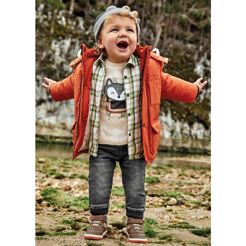 Ubranko ECOFRIENDS, zawiera bawełnę zrównoważoną. Długie spodnie typu jogger dla niemowlęcia, luźniejsze w górnej części i zwężane ku dołowi. Idealne do sportowych stylizacji, które odzwierciedlają modę uliczną. Elastyczny pas ze sznurkiem do regulacji.