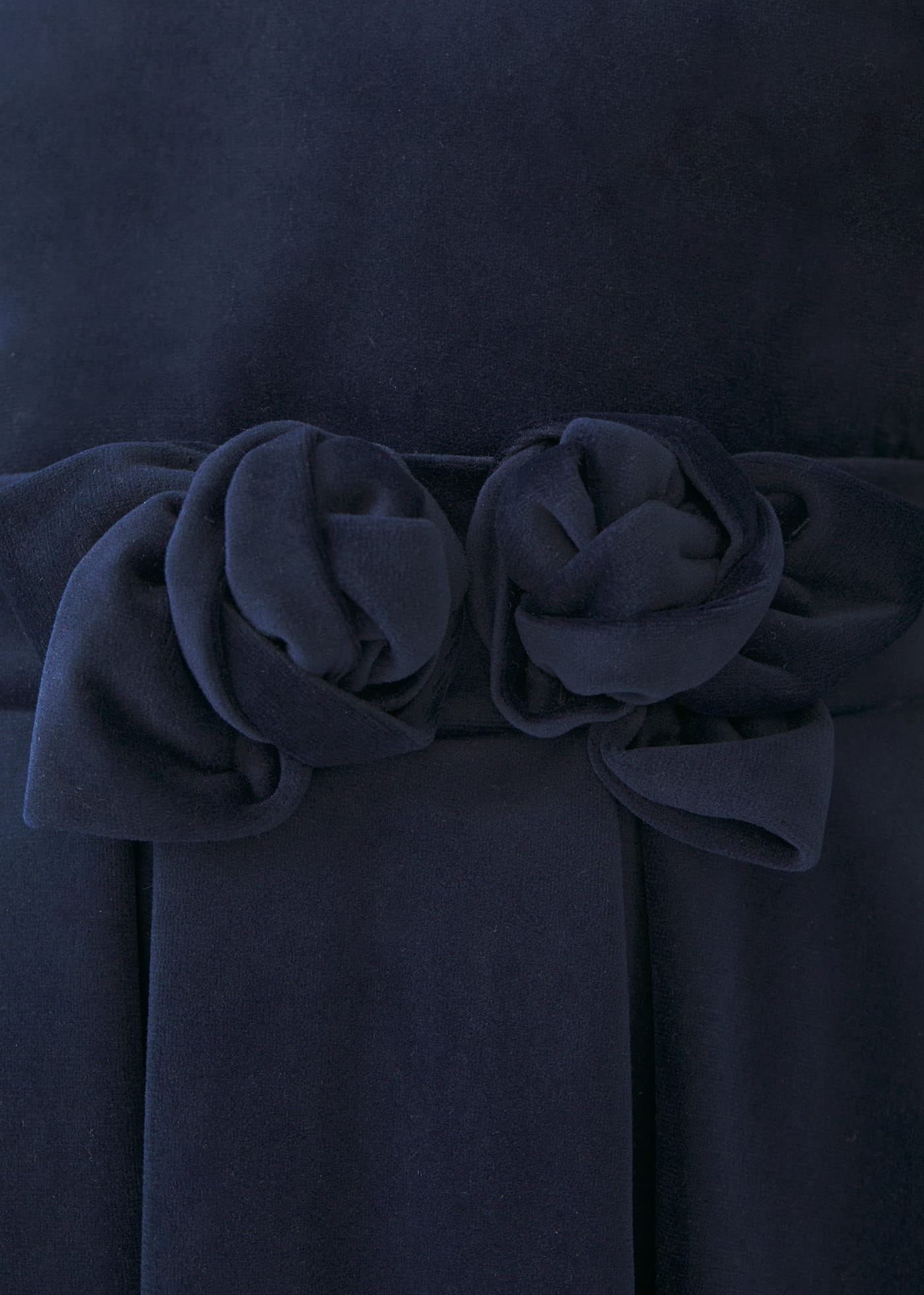 Sukienka wizytowa welwet z długim rękawem i ozdobnym kwiatem w pasie dla dziewczynki