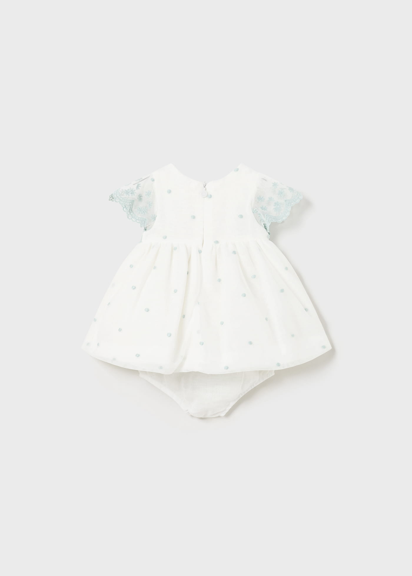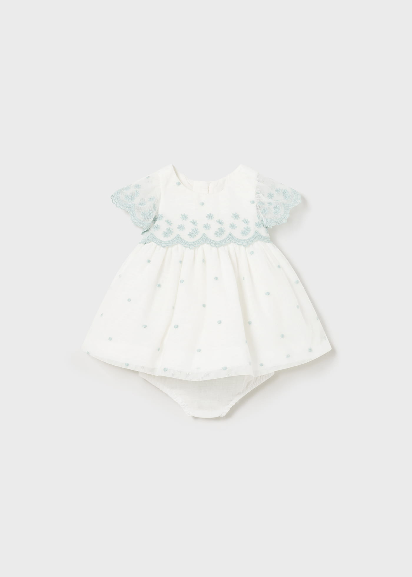 Sukienka wizytowa z krótkim rękawem i haftowanymi kwiatuszkami dla niemowlęcia, ostatni rozmiar 75
