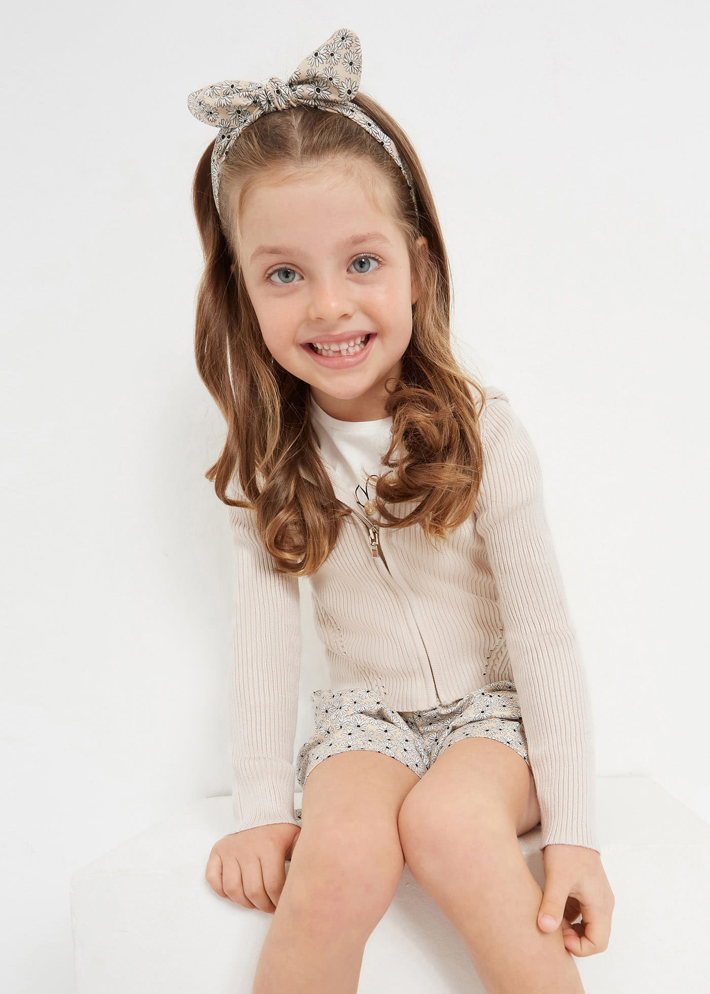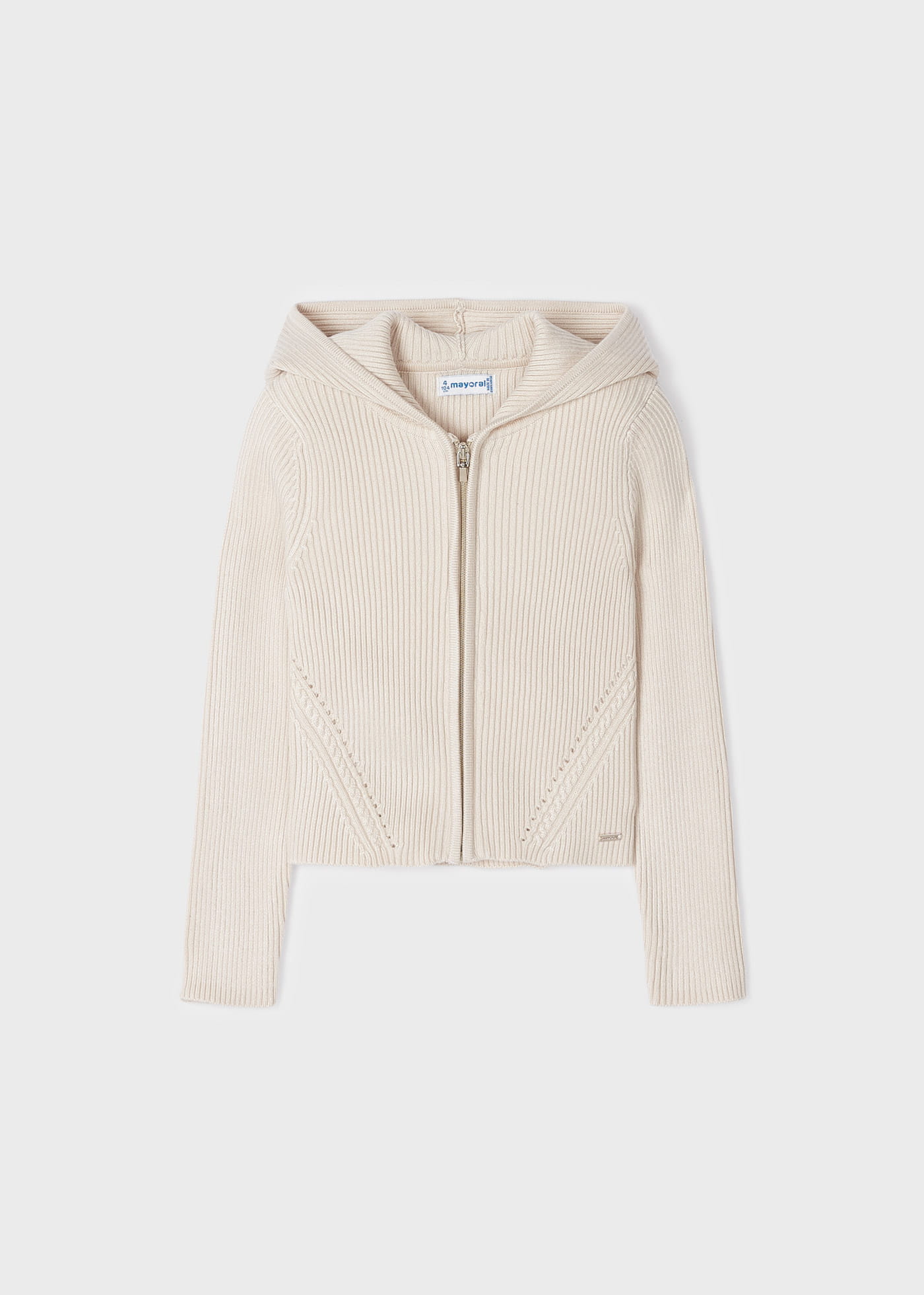 Sweterek trykotowy z kapturem zapinany na zamek dla dziewczynki Mayoral, ostatni rozmiar 110
